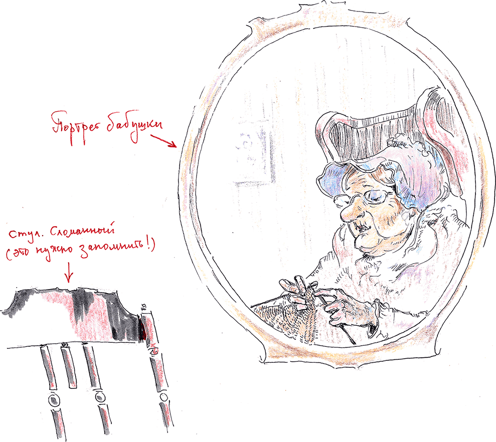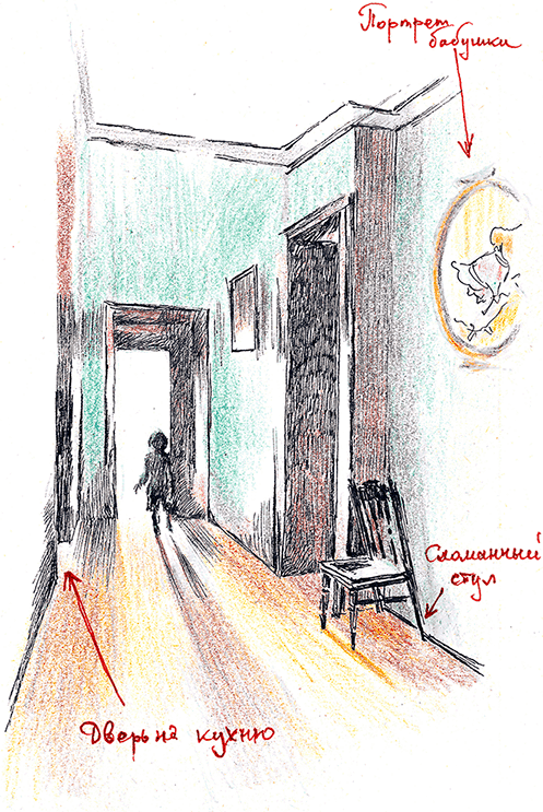 Когда папа распахнул дверь чулана, бабушка на портрете проснулась, зевнула и с интересом, вытянув шею, через его плечо заглянула внутрь.