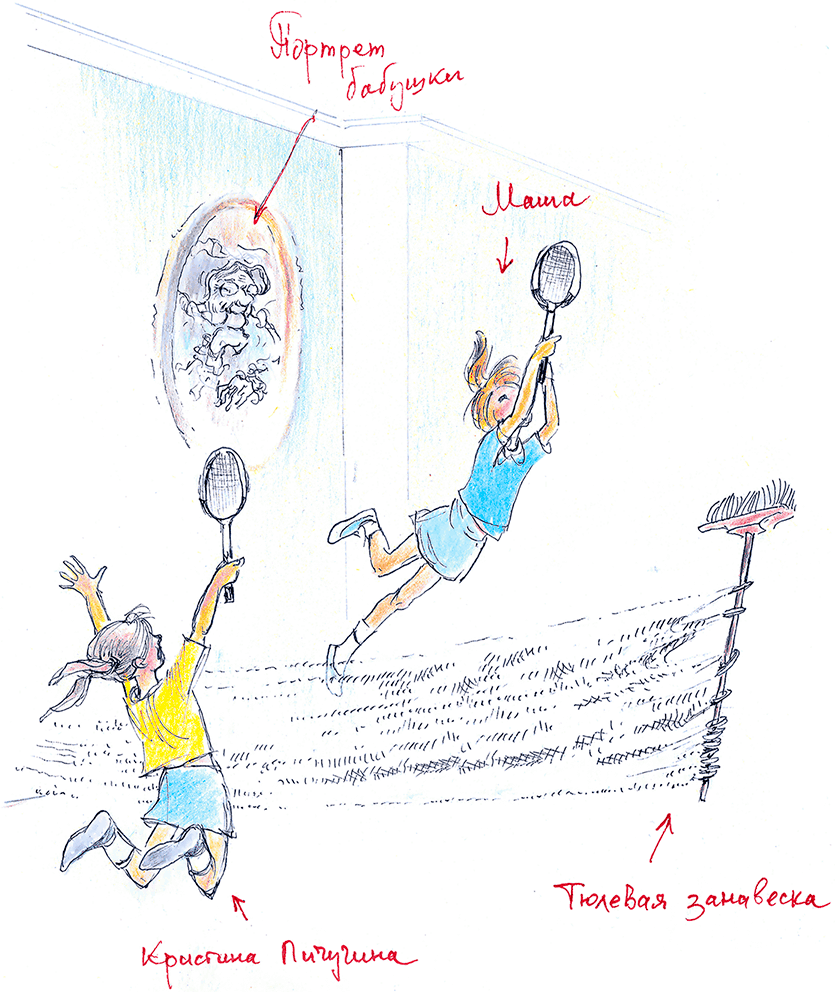 Папа и мама не успели ещё выехать из двора, как Тёма позвонил своему лучшему другу Валере Пичугину, и тот явился со своей сестрёнкой Кристиной, Машиной ровесницей. Девчонки немедленно натянули поперёк коридора тюлевую занавеску, снятую в гостиной: они затеяли теннисный матч между Марией Шараповой и Аллой Пугачевой. И такие раздавались крики и шум, что Тёма с Валерой, в папином кабинете игравшие на его компьютере, выскочили в коридор. Тёма велел девчонкам затихнуть, чтобы не разбудить живущего в чулане ужасного однорукого великана Ваню, который, если проснётся, разнесёт весь город. Но Маша и Кристина уже так разыгрались, что потребовали немедленно пробудить этого Ваню: они готовы с ним сразиться и освободить город от опасности. И побежали в Машину комнату вооружаться.