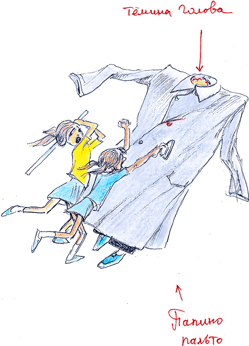 Вообще-то, их можно было назвать героями. Они сражались со страшным великаном, как зайцы с волком, они же не знали, что однорукий Ваня – это на самом деле Тёма. Он надел на себя папино пальто, Валера застегнул все пуговицы, и ту, что на воротнике, так что и левая рука, и голова оказались внутри. И теперь бедный Ваня-Тёма пытался вслепую, единственной рукой, отбиться от девчонок. Наткнулся на стул, упал, как корова. Нащупывая дверь в чулан, сквозь пальто глухо молил о пощаде: