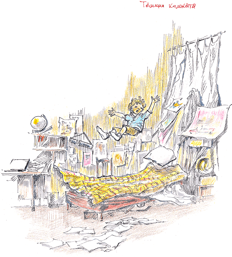 Ну и не надо. Тёма пошёл в свою комнату, всю увешанную фотографиями футболистов, гоночных машин и рок-музыкантов, громко включил музыку и стал скакать на кровати, как на батуте. Из коридора раздался голос бабушки: