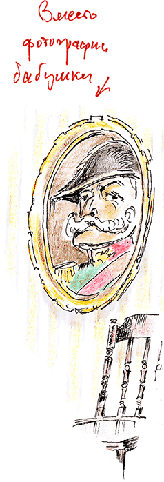Тёма поднялся на крыльцо, с опаской вошёл. Было тихо. Ему показалось, что коридор – такой же, как у них дома. Из гостиной блеснули громко тикающие каминные часы, такие же, как у них. Но напротив чулана висела не фотография бабушки, а написанный маслом портрет седоволосого генерала. Генерал с интересом посмотрел на Тёму. Тёма на всякий случай козырнул, поклонился и шаркнул ногой. Он подумал, что именно так нужно приветствовать старинных генералов. Генерал усмехнулся, но промолчал. Заговорить Тёма не решился и осторожно пошёл по коридору дальше. У лестницы лежали крест-накрест перевязанные бечёвкой стопки газет «Вестникъ» за 1910 год.