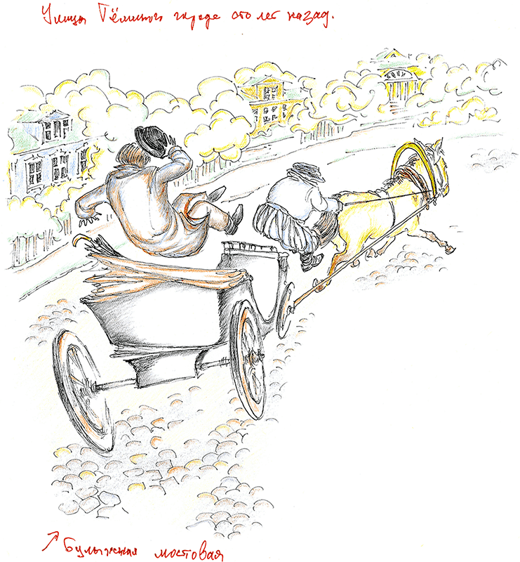 Тёма шёл по своему родному городу – тому, каким он был сто лет назад. Что-то ему нравилось, например, сады за заборами вдоль всей главной улицы. А что-то казалось смешным. Например, сама улица, ещё без асфальта, мощённая булыжником, веселила пролётками, которые нещадно дребезжали, и в них, как игрушечные, подскакивали солидные господа и дамы. Было интересно разглядывать эту незнакомую жизнь, но Тёму без конца теребила Маруська. Она то скакала рядом, стараясь заглянуть ему в лицо, то бежала прямо перед ним спиной вперёд, раза два чуть не упала. Всё время требовала новых и новых рассказов о всемирной выставке, которая, как выяснилось, почти полностью состояла из Тёминых изобретений. Если бы кто-нибудь из его учителей, или одноклассников, или даже школьников классом ниже (и не отличников, а каких-нибудь упёртых троечников), услышал его рассказы, то Тёме пришлось бы от позора не только уходить из школы, но бежать в другой город.
