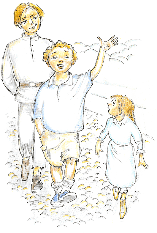 Стёпка, Тёма и Маруська побежали по тротуару вслед за дребезжащим по булыжникам велосипедом.