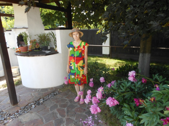 Это всё перед высокой большой (широкой) ёлкой на повороте дорожки, которая ведёт вдоль боковой стены дома в сад. И тут встречают пионы справа перед барбекю.