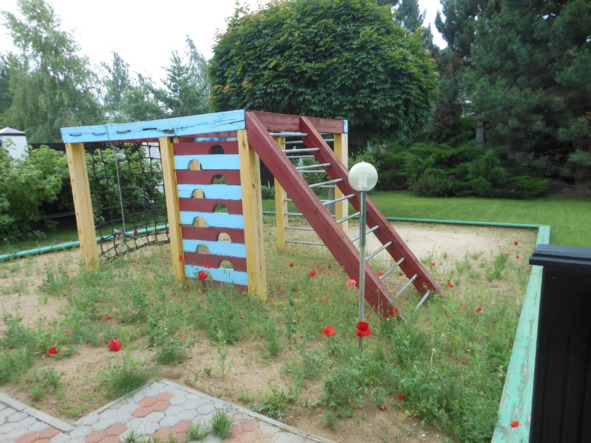 Была ещё песочница, ожидающая внуков и рядом с ней клён с круглой кроной, требующей ежегодной дизайнерской обрезки-подстрижки.