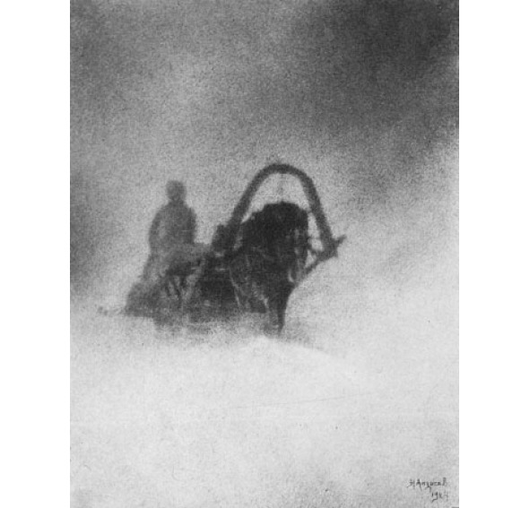 Взял Антон Павлов у местного фермера лошадь с санями еще в обед. И то, – фермер этот пожалел нашего пьяницу после долгих слезных его уговоров. Да и выделил он дряхлую слабосильную кобылку, которая до края деревни, до дома Антонова, что на окраине, плелась еле-еле. «Пока суть да дело», одел Антон старуху свою и вынес из дому, да закутал одеялами в санях, – дело склонилось к вечеру. А метель-то не унималась, и дороги все занесло. Едва выехал Антон на поля вдоль лесного массива, где и была дорога в район, прямо навстречу ему ударил резкий холодный ветер. В воздухе, куда ни глянь, кружились целые облака из снега, и не понять: идет ли снег с неба, или ветром с земли его поднимает и закручивает. И лошаденка пошла медленнее, вся энергия её уходила на вытаскивание ног из глубокого снега занесенной дороги. Антон же торопился. Он и подпрыгивал в санях, и то и дело хлестал по лошадиной спине и бормотал и бормотал, разговаривая с затихшей старухой.