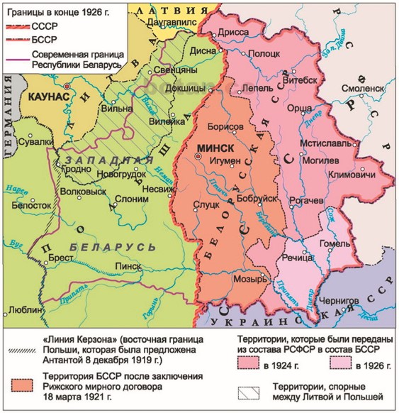 Территория Беларуси после заключения Рижского мирного договора. Укрупнение БССР в 1924 и 1926 годах