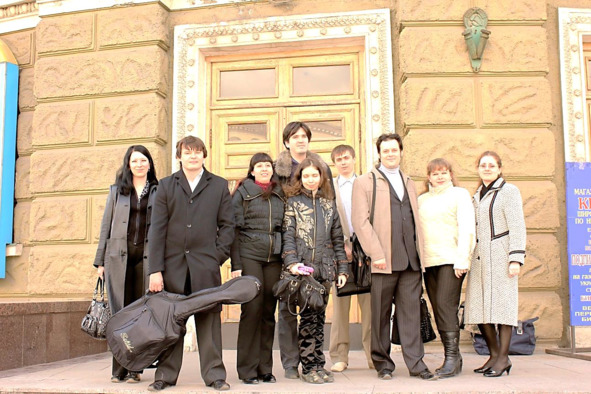 Утром просыпаюсь от трели будильника, встаю, и слышу, что за стеной, по-моему, ещё не ложились. На сегодня у нас запланирована поездка в Чугуев в музей И. Репина, встреча в 10:00 возле станции метро Пушкинская. Я встаю, умываюсь, а из второй комнаты выглядывает взлохмаченный киевлянин Богдан Головченко, которого я запомнил вчера по шляпе, обмотанной банданой (он вообще по жизни, как я потом узнаю, – тот ещё шляпник). Он в комнате не один, с ним его миниатюрная юная спутница Таня Я., 16-летняя девчонка, тоже пишущая стихи, но не вышедшая в финал и бард Александр Слюсаренко, именно он всю ночь голосил под гитару за стеной до утра. Они удивлены, что пора уже выезжать. Я выхожу из гостиницы вместе с Галиной Долгополовой, Богданом и его Татьяной. На остановке нам приходится постоять минут десять. Когда появляется нужная маршрутка, мы спокойно добираемся до площади Ярослава Мудрого и возле метро встречаем Богдана Анта. Попозировав перед фотокамерой на фоне памятника величайшему «украинцу», мы переходим на другую сторону площади, где возле киоска на Пушкинской, ожидая всеобщего сбора, пьём кофе и уплетаем пирожки. Но вот сбор заканчивается, нас немного, но часть фестиваллеров с Костинским и ещё одним из столпов АВАЛа Виталием Ковальчуком подъедут прямо на автовокзал №6, который в народе именуется «На Пролёте» (производное от «Пролетарской» станции метро). На автовокзале собирается приличная компания, когда Ковальчук пригоняет «Богданчик» под загрузку, мы понимаем – будет весьма тесно. Чудом втискиваемся в салон, Ира Кузнецова умудряется влезть с коляской (не без нашей помощи), в тесноте да не в обиде, – поехали!
