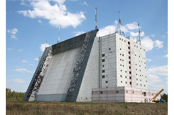 Все новое, передовое. Иногда приятно осознавать, что лично сам стоял на передовых рубежах защиты страны, принимал самое активное участие в становлении новейших систем ПРО и ПРН. И ещё один представитель современной системы ПРН – загоризонтная станция типа Контейнер. А эта красивая усеченная пирамидка в зеленном окружении, не что иное, как многофункциональный радиотехнический узел дальнего обнаружения системы ПРО. Многофункциональный потому, что видит во все стороны – на запад, на восток, на север и на юг. Расположен в подмосковном Софрино. Заменил в свое время и кубинский, и чеховский узлы. Далее ещё снимок – та же станция, но только поближе. Покрасить её бы, а то не очень смотрится с этой ржавчиной. Хотя, в принципе, там гостей не бывает. Разве только из космоса на её смотрят наши противники. Станция несет круглосуточное дежурство. Да и свч излучение там, наверное, приличное. А может не красят, потому, что дорого. Ведь покраска техники всегда входила в обязательный перечень, выполняемый при регламентных работах. К сведению. В наше время покраска передающей антенны при сезонных работах кубинского узла стоила около 400 т. полновесных советских рублей. Это равноценно тогда было $400000 по тогдашнему курсу. Или даже немного повыше. Деньги, конечно, находили.