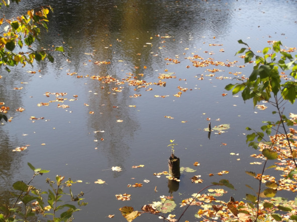 и осенний денек. Запомнился широким размахом и простором, по осеннему, желтых полей. Запомнился голубизной водной глади лесного озера. И, конечно же, запомнился падающими листьями, что кружат и тихо опускаются с осенних деревьев на землю. Красивая картина наших полей, наших лесов, нашей природы.