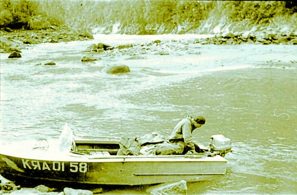 Один из них, всё равно кто, садился за двигатель, а другой, всё равно кто из них, брал гармошку в руки, и один терзал гармошку, другой рулил. Ездили вверх-вниз. Могли полчаса, час кататься. Накатавшись, успокоив души, они возвращались к употреблению живительной влаги. Живительной влаги, как правило, хватало на пороге! Потому, что каждый, почти, день одна – две лодки приходили. А бывало и пять, и десять. Большинство людей отдавали две бутылки водки за то, чтобы их лодку подняли вверх. И что бы на обратном пути спустили лодку вниз. Ну а дальше они уже двигались в верховья.