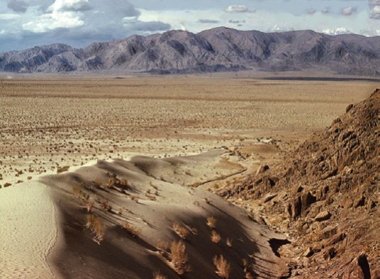 Рис. В. 11. Горы, песчаные барханы и глинисто– солончаковые равнины между склонами хребтов (Монгольский Алтай)