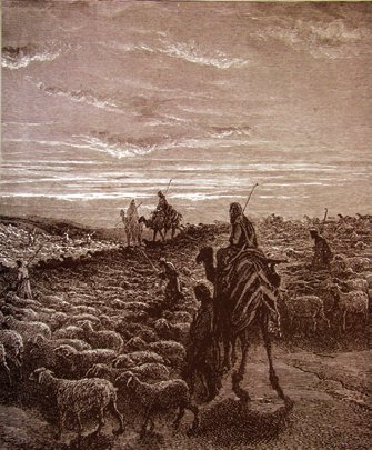 Рис. В.16. Перекочевка библейского Авраама со своими стадами в Ханаан; фрагмент гравюры Постава Доре [Книги: 30–31]