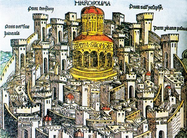 Рис. 1.5. Иерусалим – «пуп» Земли. Гравюра XV века [Chronik: 314]