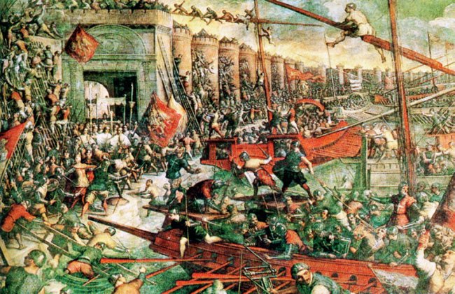 Рис. 1.8. Штурм крестоносцами стен Константинополя в 1204 году. Картина Якопо Тинторетто, XVI век [Chronik: 307]