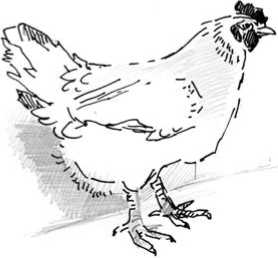 Курица задумчиво промаршировала до угла, развернулась и направилась назад. Пятно света двигалось за ней, будто за тенором на сцене, который прогуливается, перед тем как спеть свое знаменитое «куда, куда вы удалились…».