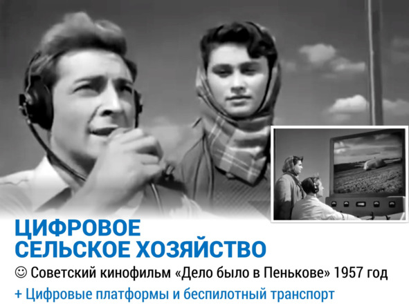 Очень рекомендую Вам посмотреть фильм «Дело было в Пенькове». В этом прекрасном фильме о любви и человеческих взаимоотношениях уже в далеком 1957 году говорилось о «цифровом» сельском хозяйстве и беспилотных комбайнах.