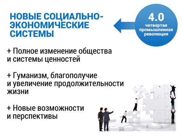 Важно понимать, что четвертая промышленная революция станет толчком к развитию новых социальных, экономических и других экосистем, способных полностью изменить наше с вами общество, сделать его более гуманным, благополучным, увеличить продолжительность жизни, открыть новые возможности для полезной и интересной жизнедеятельности.