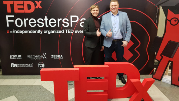 Рисунок 1. TEDxForestersPark 2019. Алмаз Фаткуллин и Александр Чесалов