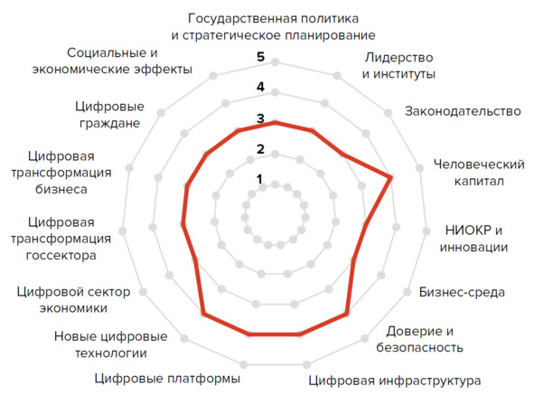 В отчете также отмечается и то, что: «структурные изъяны экосистемы цифровой трансформации в Российской Федерации, недостаток цифровых навыков, ограниченный доступ к рынкам капитала и отсутствие открытой культуры внедрения инноваций ограничивают возможности государства в достижении фундаментальных технологических прорывов в ближайшее время. Решающее значение для успешного развития России в среднесрочной перспективе имеют повышение прозрачности бизнес-среды, вложение инвестиций в цифровые технологии, внедрение новых технологий в ключевых областях, дающих конкурентные преимущества, а также укрепление связей между всеми основными участниками цифровой экосистемы, включая государственный сектор, частный сектор и научно-образовательное сообщество. Также крайне важно найти пути противодействия „утечке мозгов“, привлечения квалифицированных кадров, а также укрепления доверия к цифровой экономике и поощрения общества к активному участию в экономической деятельности в режиме онлайн через совместно используемые цифровые платформы, создание цифрового контента и другие цифровые механизмы».