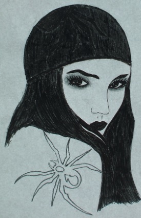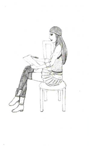 В 2009 году Алёна Ершова попыталась нарисовать моего персонажа как видела (на стульчике с блокнотом в руках). У меня тоже был рисунок. Он был срисован с одной тетради, на которой девушка очень сильно напоминала мне Противоречивую.