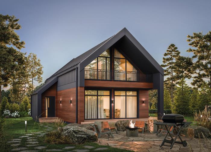 Большие участки позволяют построить дом на любой их точке. И чаще всего проходящему мимо по улице человеку дом будет не видно. Поэтому выгодное концептуальное решение не будет касаться самого дома, но может быть успешно прописано для заборов, въездных групп и фасадов. Ведь улицы в посёлке будут одинаковыми.