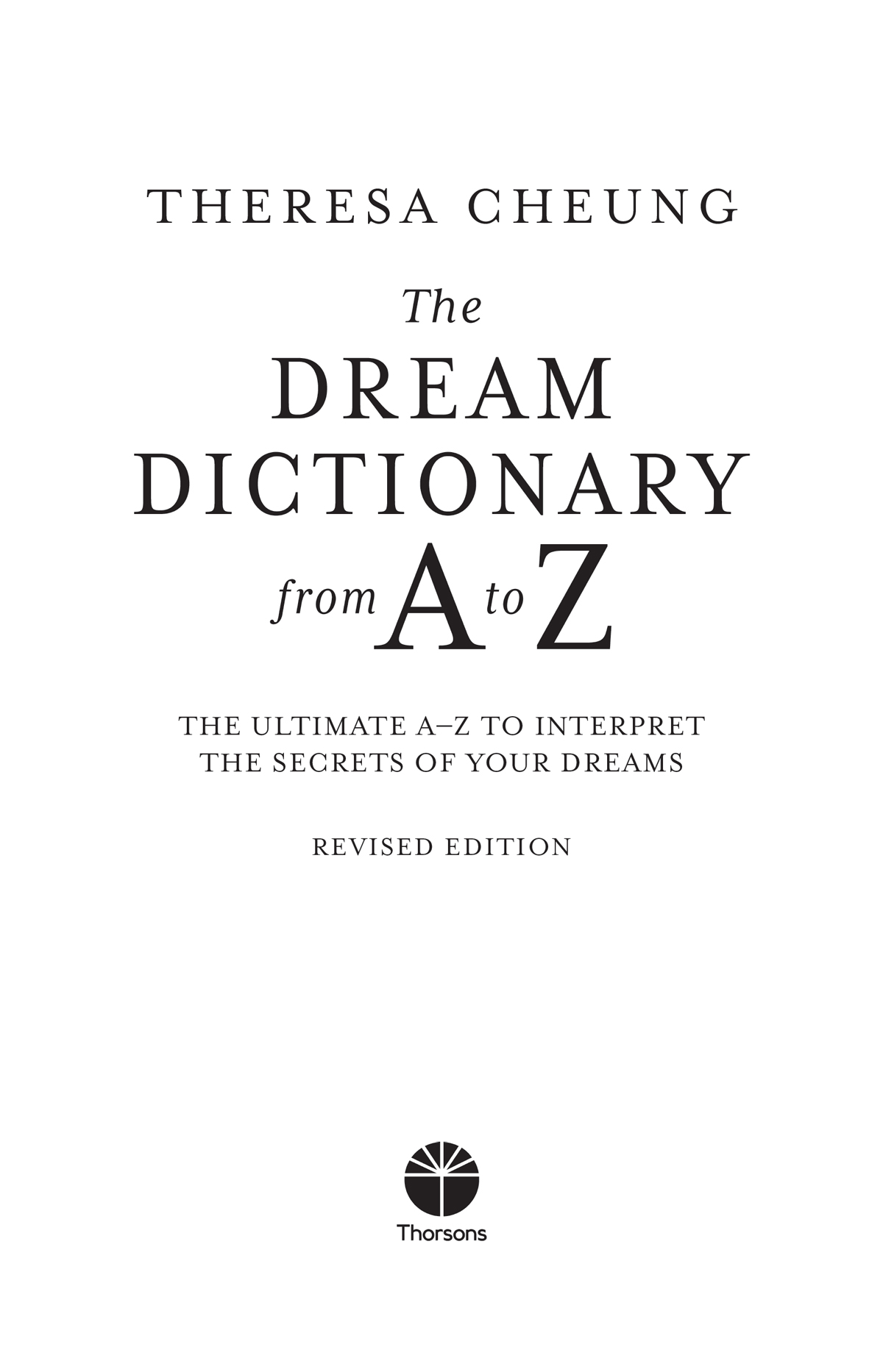 The entries in the A to Z Reader are arranged alphabetically for ease of use, but be aware that some entries, like dog, for example, are placed in categories, in this instance PETS. You will also find cross-references in many entries to other entries that might be helpful. Common dream symbols are listed as well as classic dream themes, such as FLYING or FALLING, but there are, of course, limitations in the number of entries this book can offer you; dreams invite a world of infinite possibilities and there simply isn’t a book vast enough to contain them all. If you do want a larger resource, thousands more entries can be found in my earlier dream title, The Element Encylopedia of 20,000 Dreams. You are also welcome to contact me about your dreams and how best to interpret them.