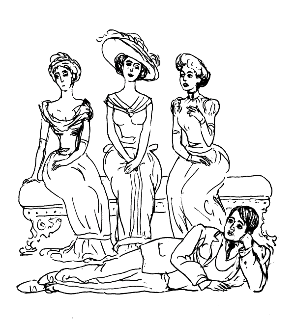 – Обыкновенно. Я предложил выбрать пейзаж, то есть задник. Они остановились на греческом виде. Дамы сели, мужчины у них за спиной встали. Все как обычно. И тут им вдумалось затеять шутливую фотографию. Местами поменялись и вот такую живую картину устроили.