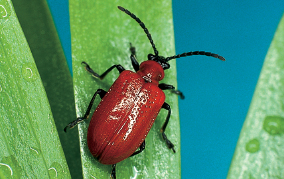 Beautiful, but also beastly, the lily beetle must go if you value your lilies.