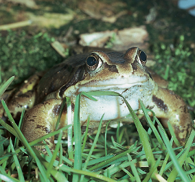 Hit by the disappearance of so many farm and village ponds, many frogs find refuge in our garden ponds and mop up the slugs in return for the hospitality.