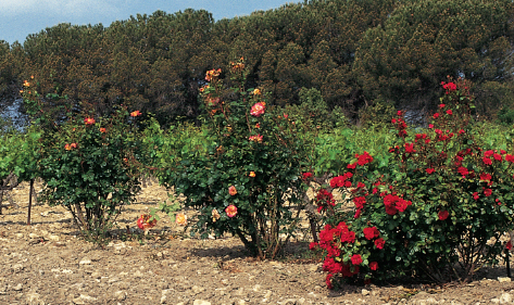 Roses are often planted in vineyards. Hover-flies, which are attracted to the flowers, lay their eggs on the surrounding vines, where their grubs attack harmful aphids and other pests.