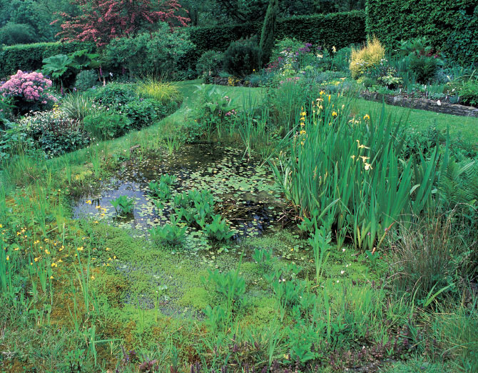 A planned garden does not have to be very formal. The position of this garden pond was actually carefully planned, but the plantlife gives it a wonderfully wild and natural appearance.