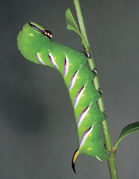 Although it is very conspicuous when viewed on a bare twig, the 10cm (4in) caterpillar of the privet hawkmoth is surprisingly hard to spot in a privet hedge.