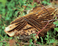 The nests of caterpillars of the small eggar moth were once common on roadside hawthorn hedges, but mechanical trimming in summer has caused the species to become rare. Garden hedges may be its salvation.