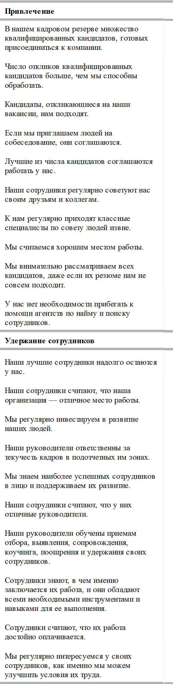 Прежде чем двинуться дальше, давайте уделим несколько минут, чтобы понять, как обстоит ситуация с кадрами у вас. Следующая анкета должна помочь вам со всей ясностью ее оценить, чтобы вы могли сосредоточиться на наиболее перспективных для роста моментах.