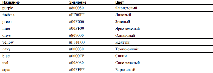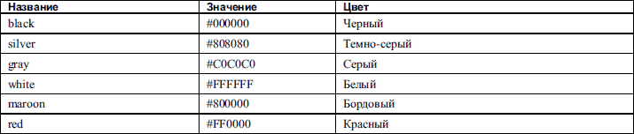 Таблица 2.3. Идентификаторы и значения часто используемых цветов