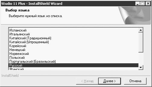 Установка Pinnacle Studio, как и любой программы, начинается с вставки носителя, на котором поставляется программа, в привод чтения компакт-дисков и DVD. Обычно программа установки запускается автоматически. Если этого не произошло или автозапуск программы установки был отменен (например, удержанием клавиши Ctrl), то самостоятельно открываем диск с помощью любого файлового менеджера (того же Проводника Windows) и запускаем Setup.exe. В результате появляется первое окно программы установки, показанное на рис. 1.1.