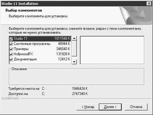 Рис. 1.4. Выбор устанавливаемых компонентов