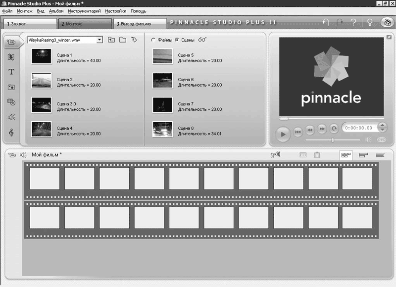 При создании нового фильма в Pinnacle Studio создается проект, в файлах которого (нас не сильно должно волновать, какие это файлы) сохраняются настройки, данные используемых в проекте видео– и аудиофрагментов, просчитанный материал и многое другое.