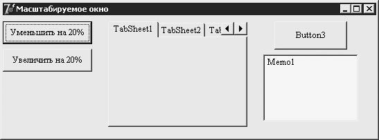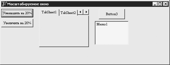 Возможность масштабирования окон (форм) является интересным приемом, который может быть заложен в дизайн приложения. При этом имеется в виду масштабирование в буквальном смысле этого слова: как пропорциональное изменение размера элементов управления формы, так и изменение размера шрифта.