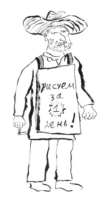 «Иногда идешь, смотришь – маленькая куколка в желтой юбочке в белый горошек. Приглядишься – а это окурочек. Или бомжа вдруг увидишь, похожего на бобра. Ну или другие жизненные сюжеты, которые хочется зарисовать», – комментировал свои работы художник.