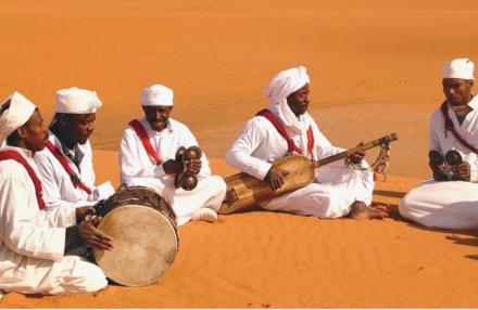 Берберы, живущие в Ливии, в основном являются племенами туарегов. Они так же поют и танцуют, а их музыка отображает местные музыкальные традиции до прихода арабов в Северную Африку. В традиционной музыке туарегов преобладают песни и инструментальная музыка с узким диапазоном, обычно это квинта или секста с использованием нехроматического пентахорда. Большинство музыкальных произведений являются монофоническими, в качестве аккомпанемента используются бубен или тамбурин (фото 5-35).
