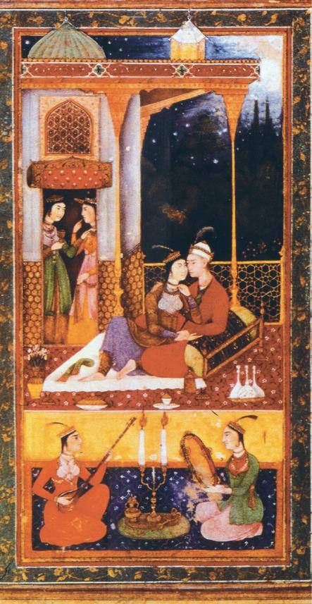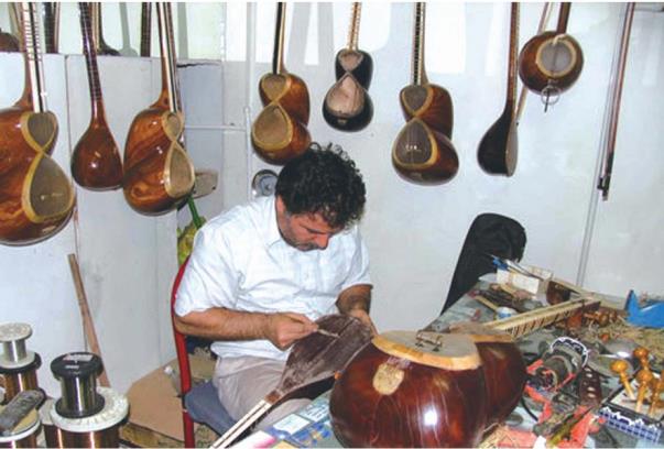 Период Сасанидов (224–651 гг.) был периодом расцвета древнеперсидской культуры. Музыка тогда играла важную роль в жизни придворной знати. Поскольку при дворе придавали большое значение музыке, в этот период появилось много известных музыкантов, таких как Рамтин, Азад, Ширин, Барбад и т. д. Барбард создал музыкальную систему, соответствующую сасанидскому календарю, состоящую из семи «царских ладов», тридцати производных ладов и 360 мелодий. На рельефе в Так-е Бостан и резных изделиях из серебра Сасанидов чётко изображены музыкальные инструменты, которыми пользовались персы в период государства Сасанидов, такие как персидская вертикальная изогнутая арфа, барбат (лютня с коротким грифом), рубабу (двойная резонансная лютня), флейта най, зурна и бубен (фото 6-2).