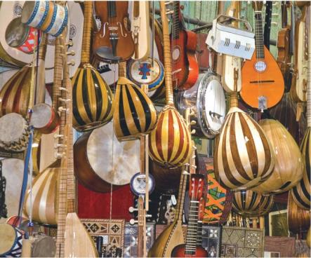 Среди народных инструментов к струнным относятся сааз и каманча. Духовые инструменты представлены зулной, тулумом, кавалом, дидиком и мейем. Барабаны включают в себя такие инструменты, как далбука, дебрек, дафф и давур; инструменты-идиофоны – это кашек и др.