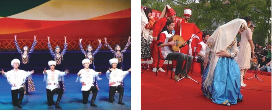 Турецкий традиционный танец возник на основе множества различных культур Анатолийского нагорья. Его основные темы – это «Имитация природных пейзажей, труда и работы», «Демонстрация любви людей к жизни», «Стремление к любви», «Религиозное благочестие» и «Выражение радостных эмоций на различных праздниках» (фото 6-44).