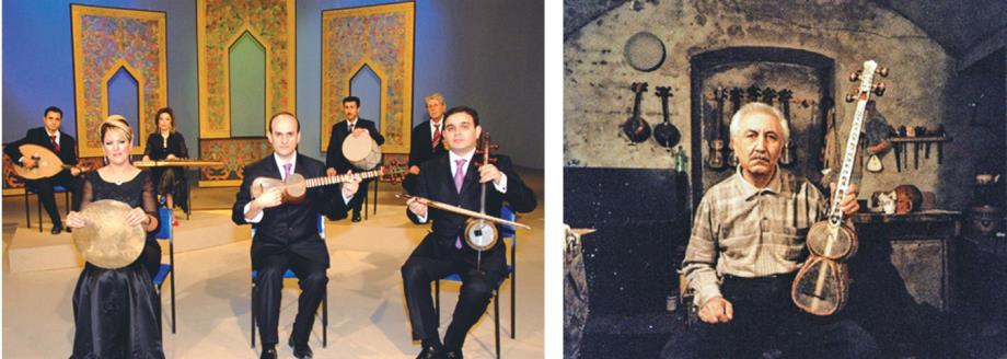 Кеменче – небольшой смычковый инструмент в форме длинного стержня с тремя струнами, настраивается на кварту, тембр хриплый. Танбур – щипковый инструмент с длинным и тонким грифом, круглым резонатором с восемью струнами, по две в группе. Общая длина инструмента – 125 см, он используется для соло и аккомпанемента. Танбур – один из важнейших традиционных инструментов турецкой классической музыки, в настоящее время его можно увидеть только в Стамбуле.