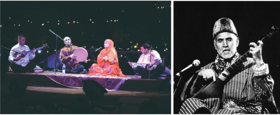 Азербайджанский мукам – это цикл, состоящий из увертюры «балдашт», нескольких песен и инструментальной музыки. Существует 8 циклов: «Раст», «Ирак», «Науруз», «Исфахан», «Хеса», «Ушак», «Рахави» и «Зелаф-хан». Некоторые из названий мукамов являются названиями местности, например Раст, Ирак и Исфахан, а некоторые иллюстрируют особый мотив лада. Например, «Ушак» означает страсть. В азербайджанском мукаме обычно играют с бубном, нагрой, каманчей и таром (фото 6-54). Азербайджанский мукам – это строго структурированная традиционная музыка, которая очень подходит для импровизации. Мукам считается классической музыкой Азербайджана, вобравшей в себя мелодии, ритмы и исполнительское мастерство поэтов-музыкантов, восхваляющих героев нации. Исполнение мукама можно услышать по всей стране по разным поводам. Этот музыкальный жанр с декоративными звуками, он исполняется поэтами-музыкантами разного пола и сопровождается традиционными музыкальными инструментами, в частности, применяют тал (11-струнная лютня), каманчу (скрипка) и дафф (большой бубен).