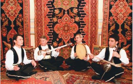 Население Азербайджанской Республики составляет более 8 млн человек, 80 % из которых – тюркоязычные азербайджанцы. Русские и армяне являются основными этническими меньшинствами. Поскольку предки азербайджанцев были выходцами из Средней Азии, включая гуннов и скифов, которые перебрались на запад, а также различных тюркоязычных племён, таких как угусы и бекси. Язык и культура азербайджанцев во многом похожи на китайскую. Например, многие истории и легенды, распространённые среди уйгуров, также бытуют в Азербайджане, эти две этнические группы также имеют в своей культуре много схожих традиционных музыкальных жанров и инструментов. Традиционная азербайджанская музыка включает в себя пять категорий: народные песни, инструментальная музыка, танцевальная музыка, песни-сказы и мукам (фото 6-48).