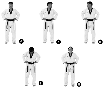 Из исходного положения выполните медленный поворот головы влево, затем вправо, вернитесь в исходное положение и выполните медленный наклон головы вперед, затем назад. Количество повторений 10–15 раз.