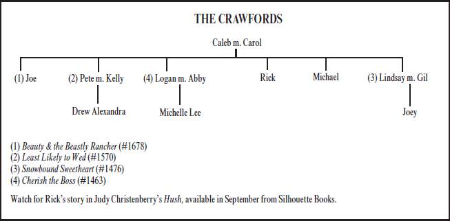 Caleb Crawford: The head of the Crawford family is hiding some scandalous secrets from his own children. Find out what they are, in Hush, Judy Christenberry’s newest novel from Silhouette Books, available September 2003.